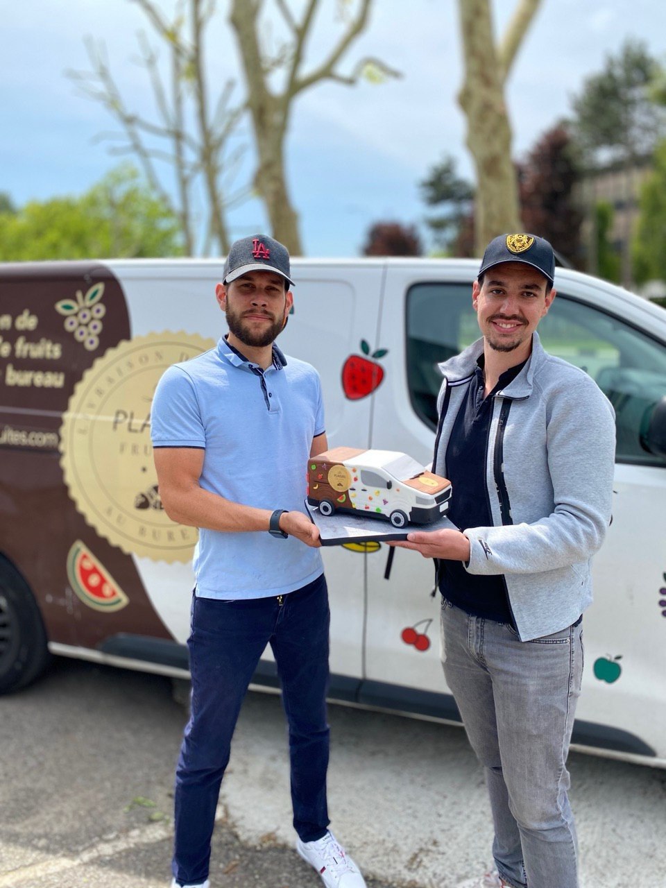 Maxime Pottier et Alexis Hubert, amis depuis l'enfance, partagent le même désir d'entreprendre. Ils fondent Les Plaisirs Fruités depuis leur dépôt de Bois d'Arcy (Yvelines) avec une idée simple : proposer des alternatives saines aux viennoiseries et barres chocolatées au bureau. La livraison de corbeilles de fruits en entreprise décolle rapidement.